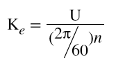 試驗(yàn)時(shí)測(cè)取電機(jī)空載轉(zhuǎn)速為n時(shí)的線反電動(dòng)勢(shì)U,用下式計(jì)算反電動(dòng)勢(shì)常數(shù),以驗(yàn)證是否滿足技術(shù)要求限制范圍。