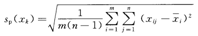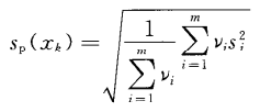 若對(duì)每個(gè)被測(cè)件已分別按n次重復(fù)測(cè)量算出了其實(shí)驗(yàn)標(biāo)準(zhǔn)偏差si,則m組測(cè)得值的合并樣本標(biāo)準(zhǔn)偏差sp(xk)可按公式12計(jì)算: