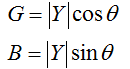 G、B 分別為Y的電導(dǎo)分量和電納分量。導(dǎo)納的極坐標(biāo)形式為