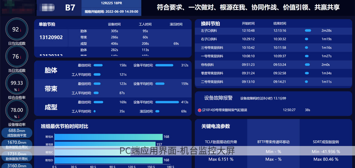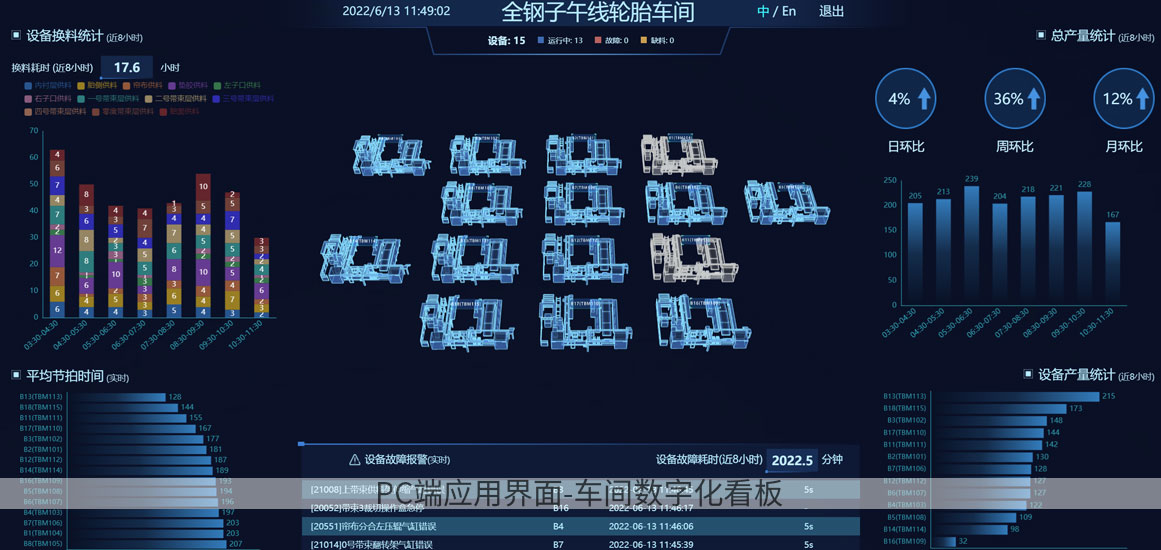 針對貴州省某輪胎5G全聯(lián)接智能工廠,適用于賽象科技生產(chǎn)的輪胎成型機設(shè)備的設(shè)備數(shù)字化管理及在線監(jiān)控場景.通過設(shè)備物聯(lián)數(shù)據(jù)采集集成設(shè)備數(shù)字化工業(yè)App,為客戶提供了設(shè)備的安全風(fēng)險管理、部件壽命管理、在線維護指導(dǎo)、效率分析、工藝質(zhì)量監(jiān)控、故障報警監(jiān)控及響應(yīng)管理、產(chǎn)量分析、換料效率管理、關(guān)鍵工藝參數(shù)監(jiān)控、能耗監(jiān)控管理及綜合OEE分析等設(shè)備運行階段的產(chǎn)品生命周期管理功能。