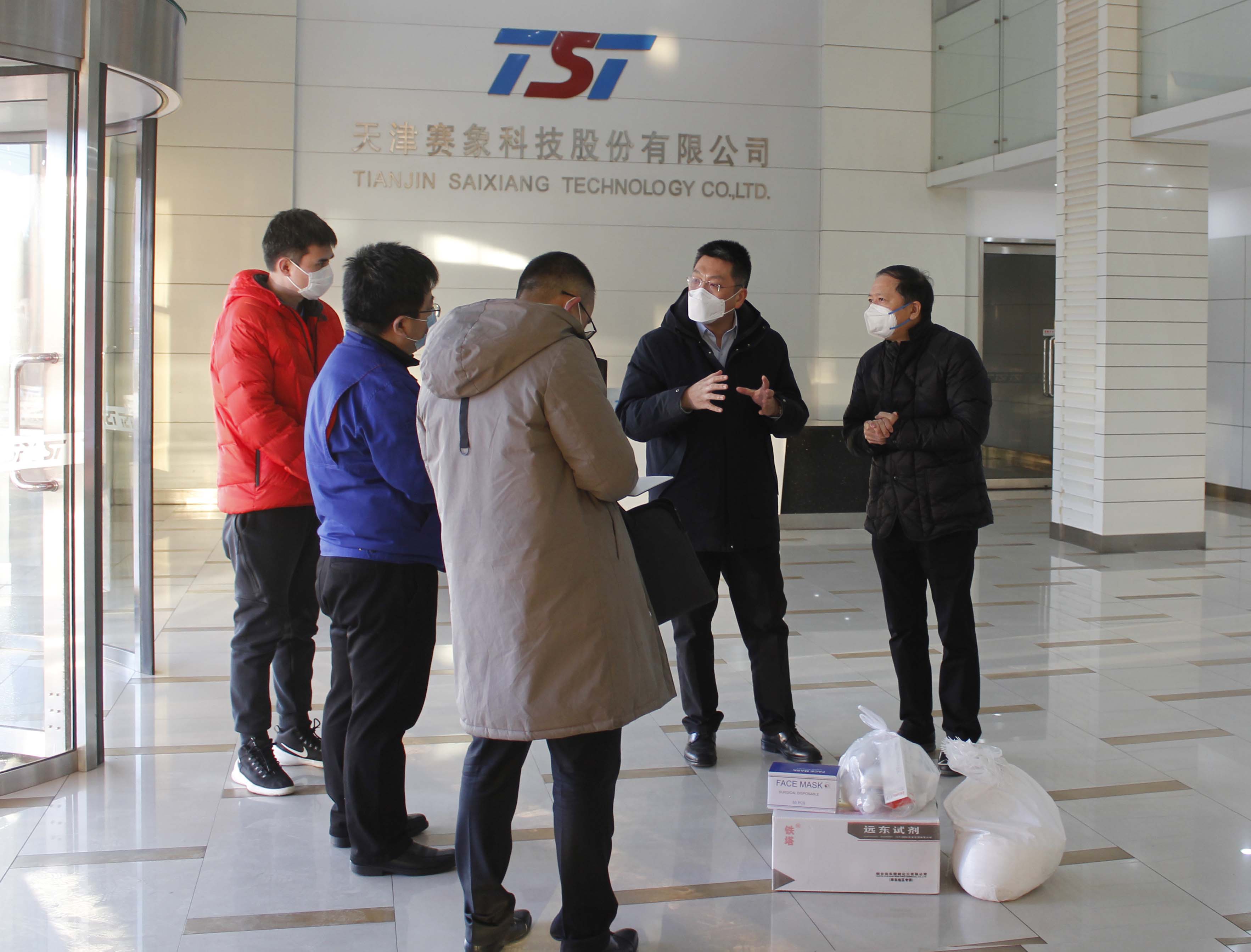 2月16日,濱海高新區(qū)黨委書記、管委會(huì)主任單澤峰帶隊(duì)蒞臨賽象集團(tuán)檢查企業(yè)節(jié)后復(fù)工及疫情防控工作,并為公司送來疫情防控物資。賽象集團(tuán)董事長張建浩接待了單澤峰書記一行,賽象科技副總經(jīng)理、疫情防控小組副組長王紅軍向高新區(qū)領(lǐng)導(dǎo)匯報(bào)了公司復(fù)工及疫情防控具體情況。