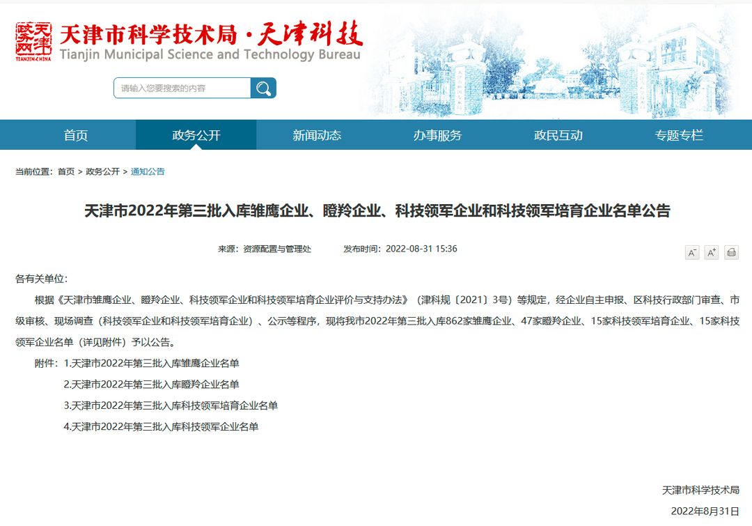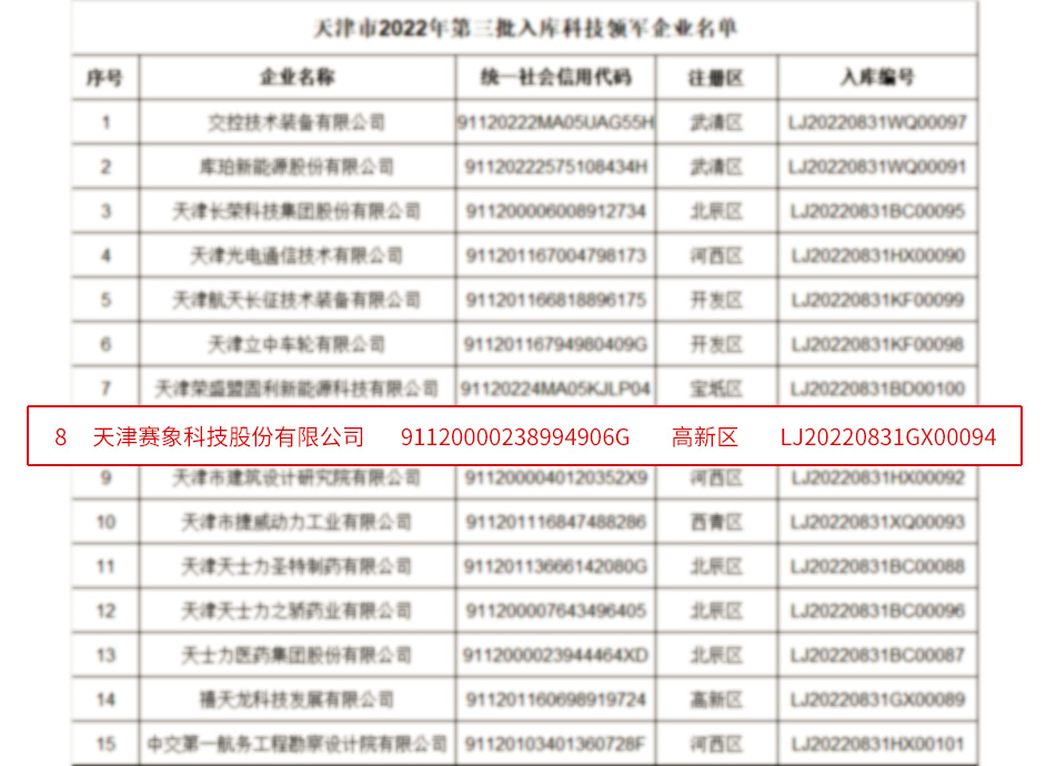近日,天津市科學(xué)技術(shù)局發(fā)布了《天津市2022年第三批入庫雛鷹企業(yè)、瞪羚企業(yè)、科技領(lǐng)軍企業(yè)和科技領(lǐng)軍培育企業(yè)名單公告》,天津賽象科技股份有限公司位列“天津市科技領(lǐng)軍企業(yè)”榜單。