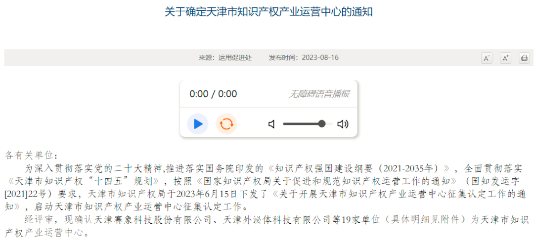 日前,天津市知識(shí)產(chǎn)權(quán)局發(fā)布了《關(guān)于確定天津市知識(shí)產(chǎn)權(quán)業(yè)運(yùn)營(yíng)中心的通知》,天津賽象科技股份有限公司入選首批天津市知識(shí)產(chǎn)權(quán)產(chǎn)業(yè)運(yùn)營(yíng)中心,重點(diǎn)面向高端裝備方向開(kāi)展知識(shí)產(chǎn)權(quán)成果的運(yùn)營(yíng)及轉(zhuǎn)移轉(zhuǎn)化。
