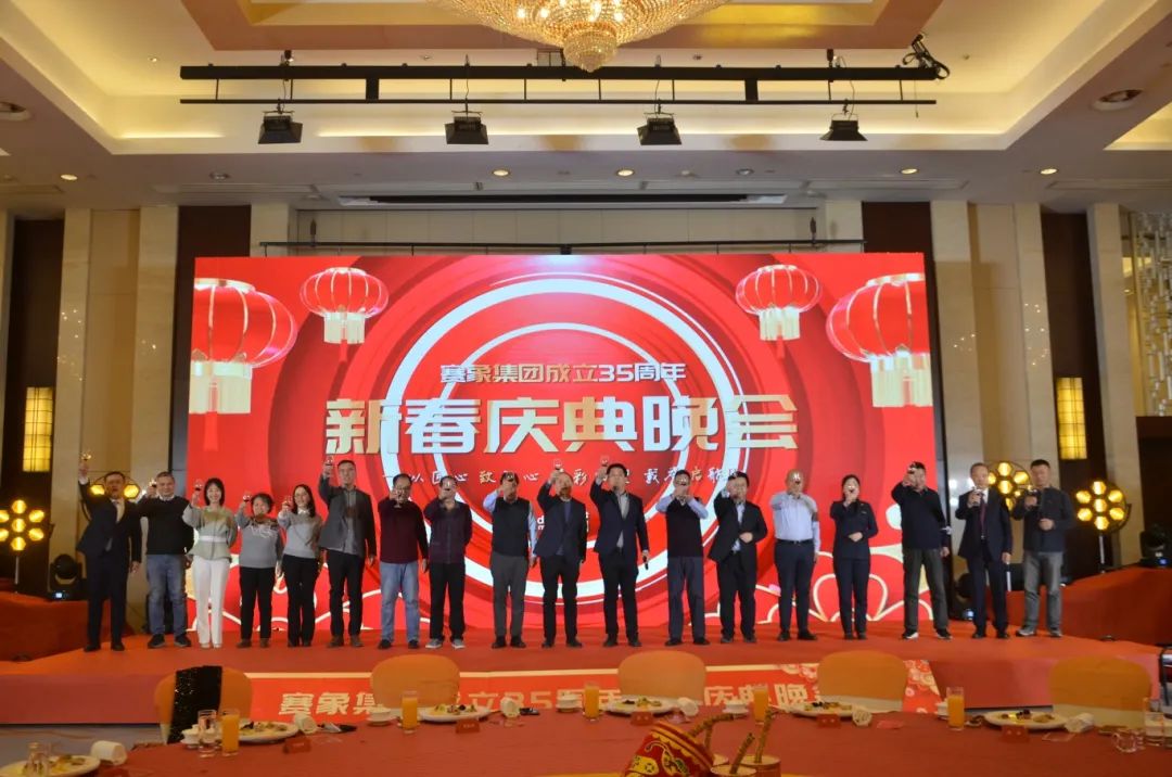 在此起彼伏的祝福聲中,集團(tuán)董事長張建浩上臺發(fā)表致辭,回想賽象集團(tuán)35年來的發(fā)展歷程感慨萬千,千言萬語道不盡,凝聚成賽象集團(tuán)“工匠精神”“創(chuàng)新創(chuàng)業(yè)”的企業(yè)基因和精神內(nèi)核。隨后,張建浩董事長邀請集團(tuán)及各子公司高管上臺,與所有人共同舉杯,共享這一喜悅而榮耀的時(shí)刻,并向全體同仁致以新春的問候!