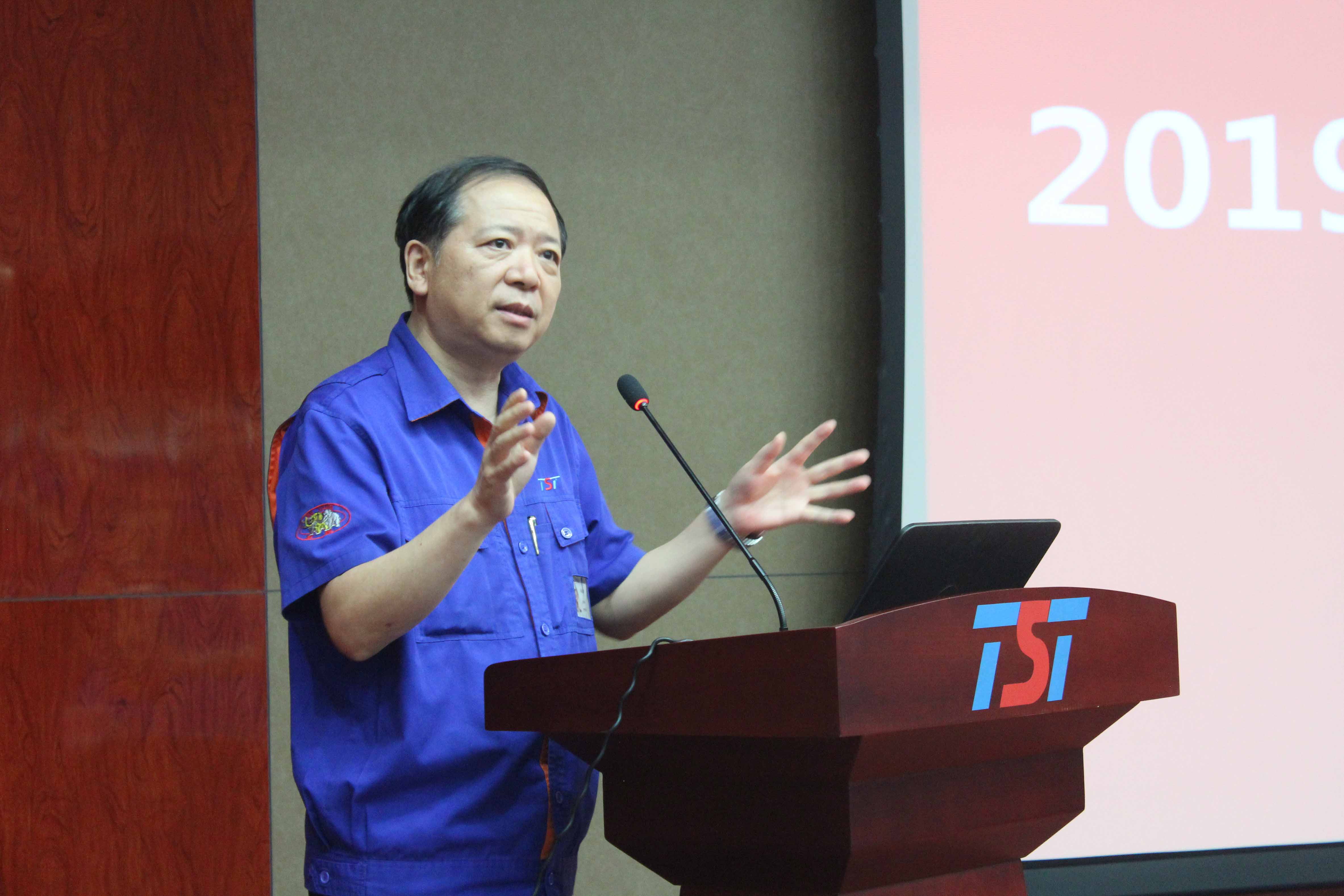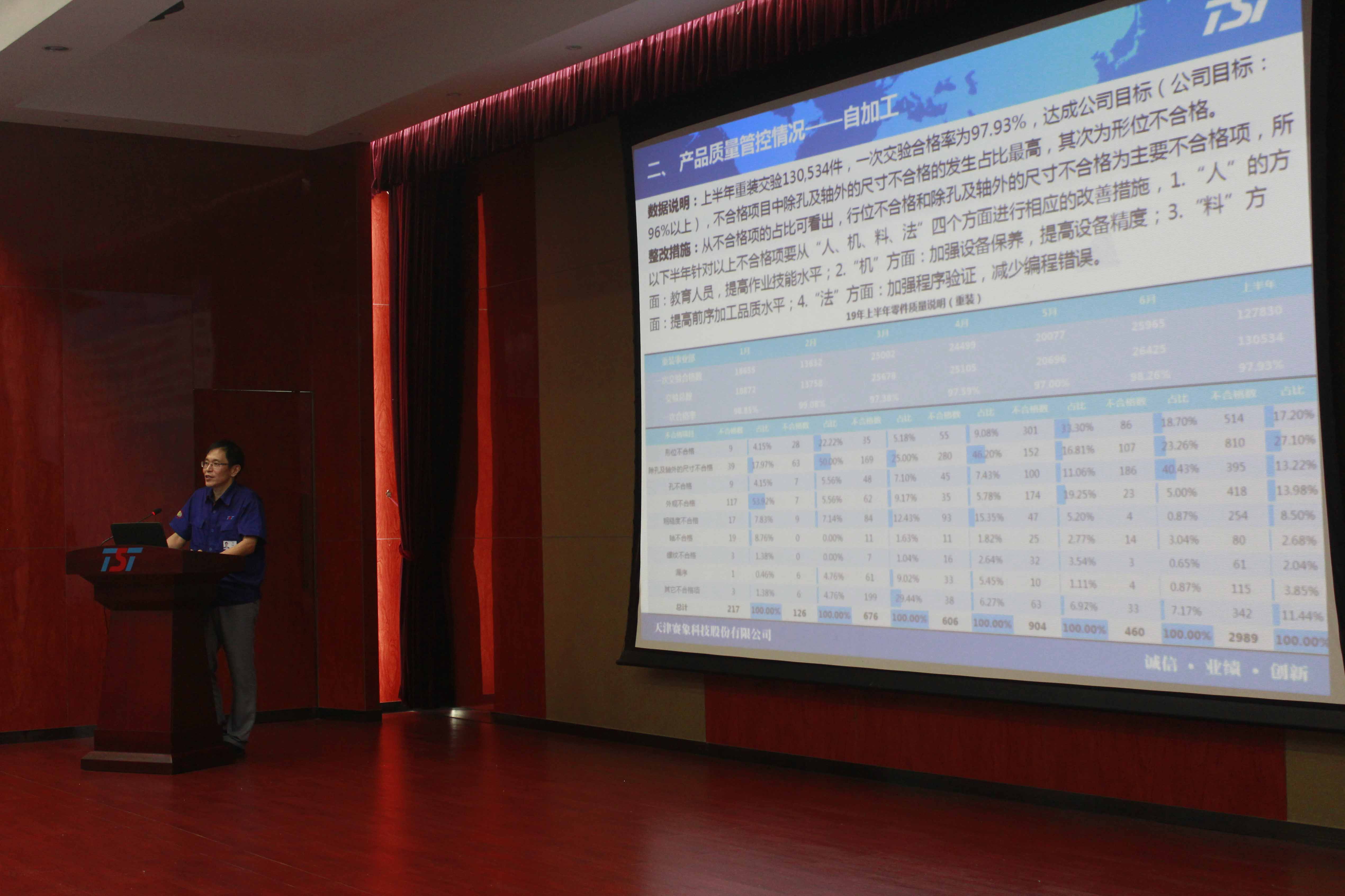 大會(huì)在莊嚴(yán)的國歌聲中拉開帷幕。首先,公司總經(jīng)理史航作了公司2019年年中總結(jié)。史總從“2019年上半年經(jīng)營業(yè)績完成情況、產(chǎn)品質(zhì)量管控情況、降本增效、生產(chǎn)效率提升、安全與能源管理”幾個(gè)方面對2019年上半年工作完成情況進(jìn)行了全面地總結(jié)。史總通過上半年工作的完成數(shù)據(jù),客觀分析了當(dāng)前面臨的形勢,并對公司下半年的工作重點(diǎn)和相關(guān)的改進(jìn)措施提出了新的要求,并號(hào)召各部門共同努力,為完成公司2019年的方針和經(jīng)營目標(biāo)而共同奮斗!