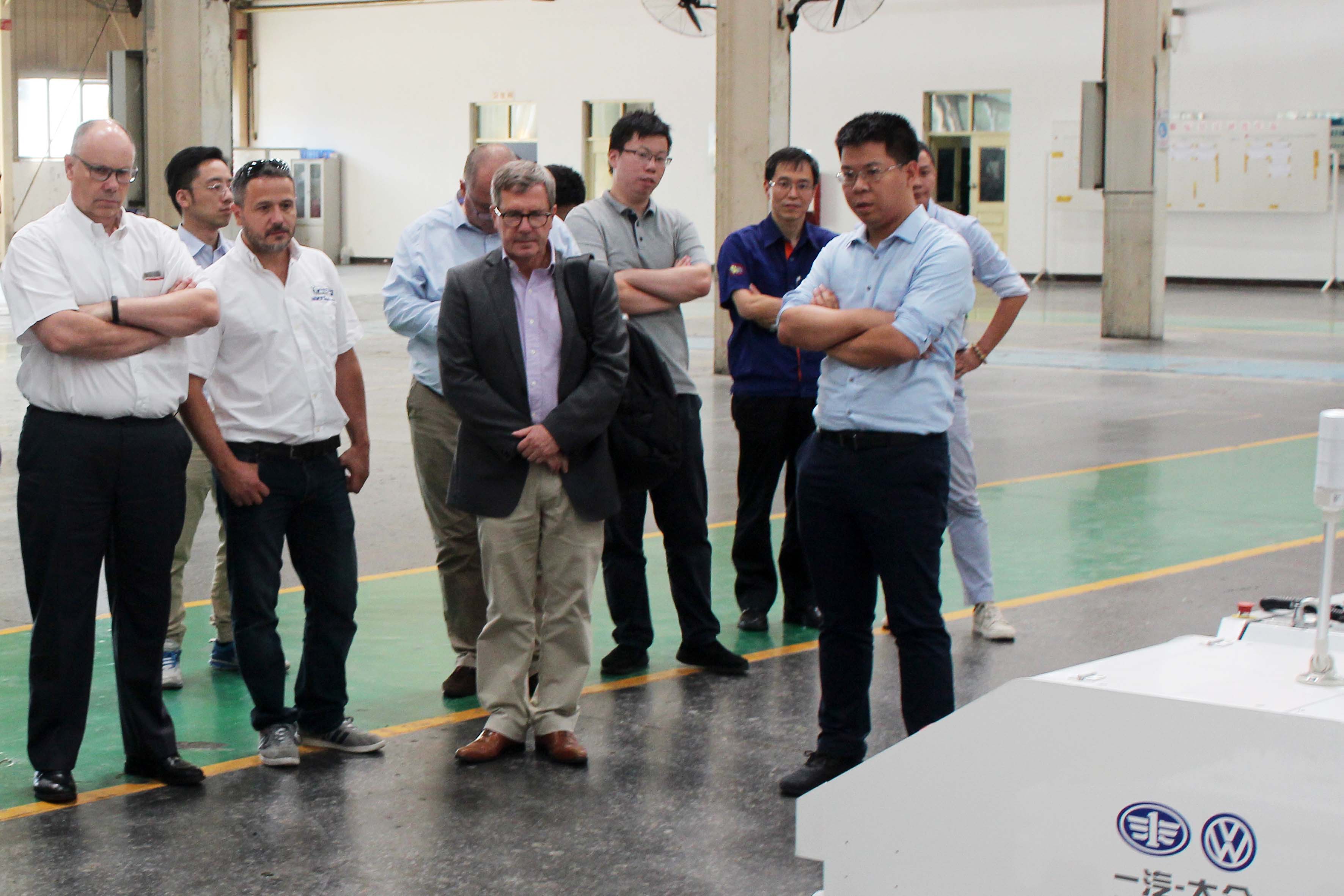 在張曉辰董事長的陪同下,Andre Pallotta一行首先參觀了公司展廳與一期、二期生產(chǎn)車間,并詳細(xì)了解了公司的創(chuàng)業(yè)歷史以及發(fā)展歷程。在生產(chǎn)車間,董事長張曉辰還為來賓詳細(xì)講解了我公司生產(chǎn)制造的AGV智能物流在輪胎工廠的運(yùn)用,得到來賓的一致認(rèn)可。最后,賓主雙方均表達(dá)了希望深入交流,并進(jìn)一步建立合作關(guān)系的意愿。